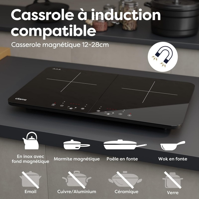 Amplia aplicación: adecuado para ollas y cuencos de 12 a 28 cm especiales para cocinas de inducción. Si no se detecta ningún utensilio de cocina, la cocina de inducción se apagará automáticamente en 60 segundos.