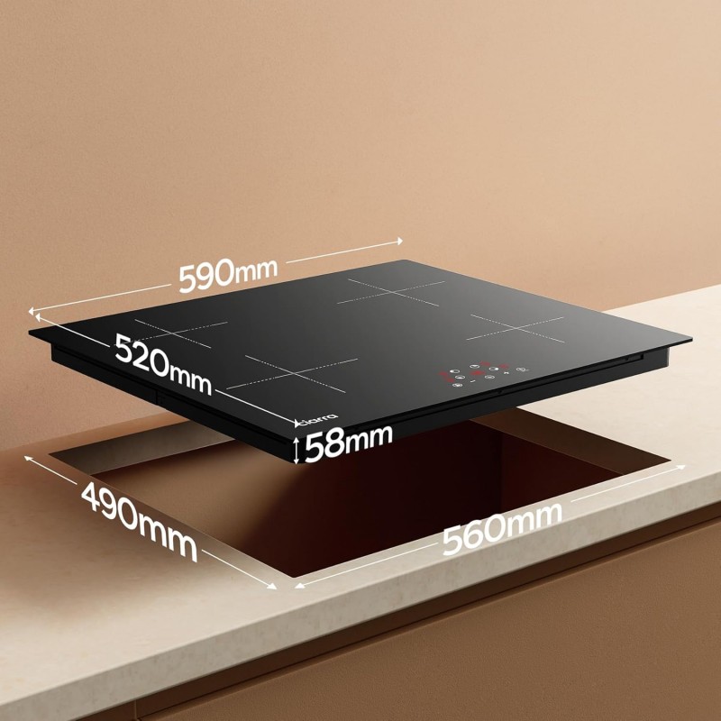 Alta eficiencia: con cuatro potentes zonas de calentamiento por inducción, esta placa de cocción incorporada se calienta de manera rápida y eficiente, ahorrándole tiempo y energía en la cocina.
