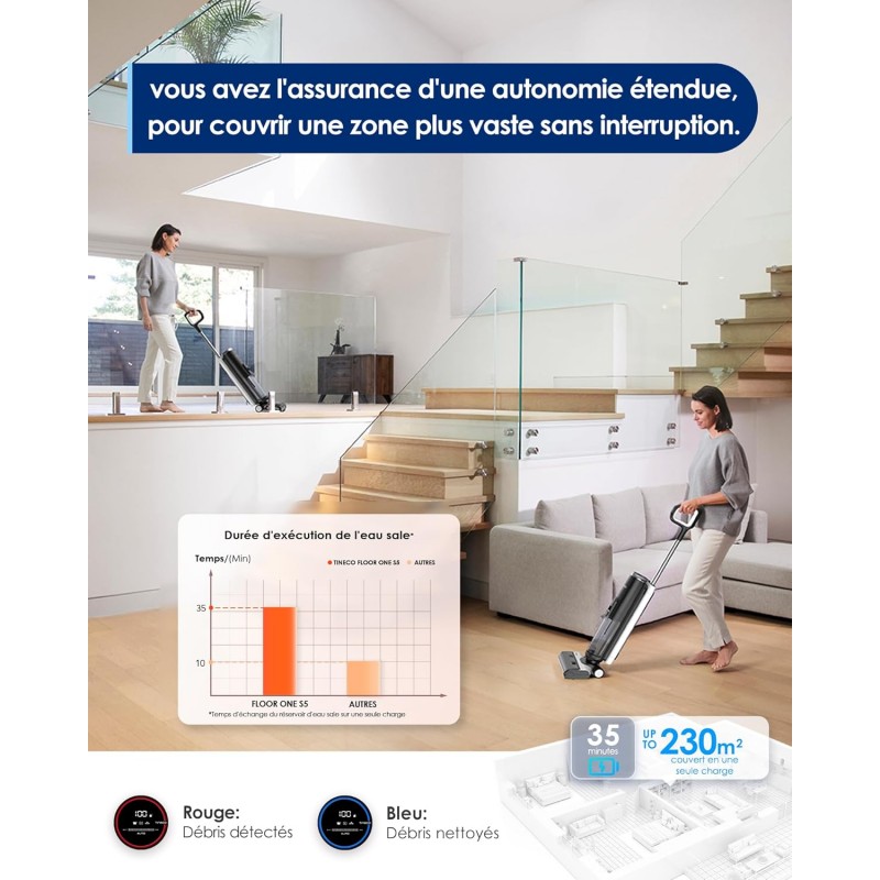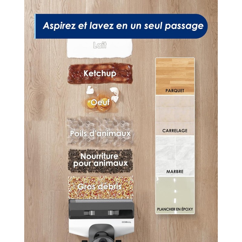 Cartographie intelligente, Aspiration et nettoyage simultané, Anti-collision, Mode turbo, Zone interdite, Nettoyage sélectif de pièce, Ramassage de poil d'animal, Navigation LiDAR
