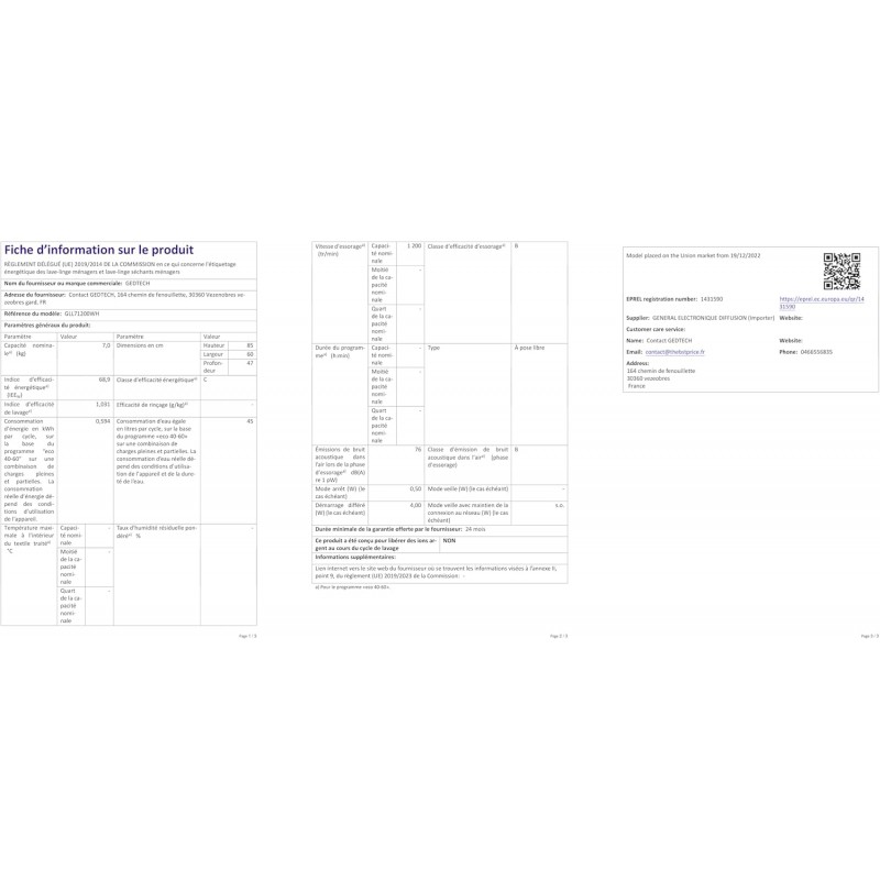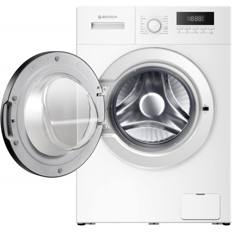 Performance - Doté d'un moteur inverter silencieux et de 16 programmes de lavage différents, ce lave-linge GEDTECH à chargement frontal à faible consommation d'énergie offre une efficacité et une polyvalence accrues pour le lavage de divers articles, tels que de grandes pièces, des vêtements délicats, des tenues de sport, de la laine, et bien plus encore.