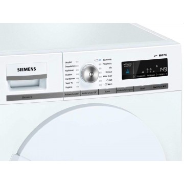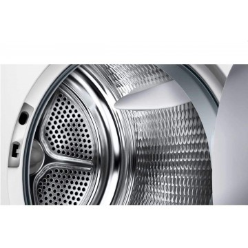 Performance et consommation Capacité nominale pour le programme coton standard avec remplissage complet : 8 kg de linge en coton Type de séchage : condensation avec technologie de pompe à chaleur Classe d'efficacité énergétique : A+++ Consommation d'énergie de 176,0 kWh/an sur la base de 160 cycles de séchage pour le programme coton standard avec remplissage complet et partiel ainsi que la consommation des modes de fonctionnement à faible puissance. La consommation d'énergie réelle par cycle dépend du type d'utilisation de l'appareil. Consommation d'énergie du programme coton standard pour un remplissage complet 1,46 kWh et consommation d'énergie du programme coton standard à remplissage partiel 0,82 kWhConsommation en mode arrêt 0,1 W et 0,1 W en mode non éteint 0,1 W Durée de l'état non éteint : 30 min Le programme coton sec au placard est le troo par défaut. Programme de séchage auquel se rapportent les informations sur l'étiquette et dans la fiche technique. Ce programme est adapté pour le séchage des textiles en coton humides normaux et est le plus efficace en termes de consommation d'énergie pour le coton. Durée du programme coton standard avec remplissage complet et partiel : 117 min. Durée du programme coton standard à remplissage complet 148 min et durée du programme coton standard pour remplissage partiel 94 min. Réduction de la condensation Classe d'efficacité B sur une échelle de G (efficacité minimale) à A (efficacité maximale). Efficacité de condensation moyenne du programme coton standard à remplissage complet 87 % et efficacité de condensation moyenne du programme coton standard à remplissage partiel 89 %. Efficacité de condensation pondérée du programme coton standard 88 %. Niveau de puissance acoustique : 62 %. dB (A) re 1. Programmes pW Programmes spéciaux : finition laine, mélanges, serviettes, couettes, oreillers, programme horaire chaud, programme horaire froid, coton, synthétique, allergie plus/hygiène, sportivePlus, lingerie, super 40, chemisiers/chemises Options anti-froissage 120 min sur la détouchage du programme Boutons de contrôle : déjà, signal, départ différé du temps de fin, démarrage/pause, objectifs de séchage, puissance Bouton, grammage de séchage. Réglage fin, sécurité enfant 3 secondes, protection contre les plis 60 min, protection contre les plis 120 min, départ différé du temps de fin 24 h Confort et sécurité SelfCleaning Condenser – Plus besoin de nettoyer le condensateur AutoDry : programmes de séchage contrôlés par l'humidité, sélection du programme avec interrupteur marche/arrêt intégré, grand écran LED clair pour affichage du temps restant et 24 h. Avancement du temps de fin. État du programme, fonctions supplémentaires. Système de tambour softDry : grand tambour en acier inoxydable, transducteur au design doux anti-vibrations : plus de stabilité et de silence. Éclairage intérieur du tambour : LED sécurité enfant. Signal sur la porte en plastique blanc. Fermeture confortable. Informations techniques : Dimensions de l'appareil (H x l x P) : 84,2 cm x 59,8 cm x 65,2 cm différentiel à partir de 85 cm N. Hauteur de la niche