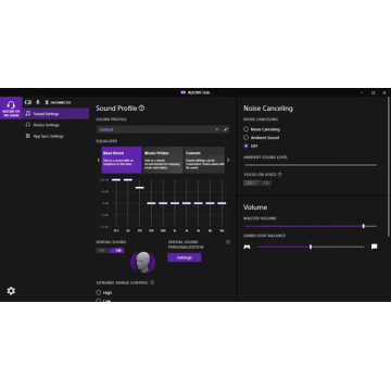 The Sony INZONE H9 gaming headset can be configured using the INZONE Hub software. The user-friendly interface provides access to an equalizer, spatialization options, and noise cancellation settings.