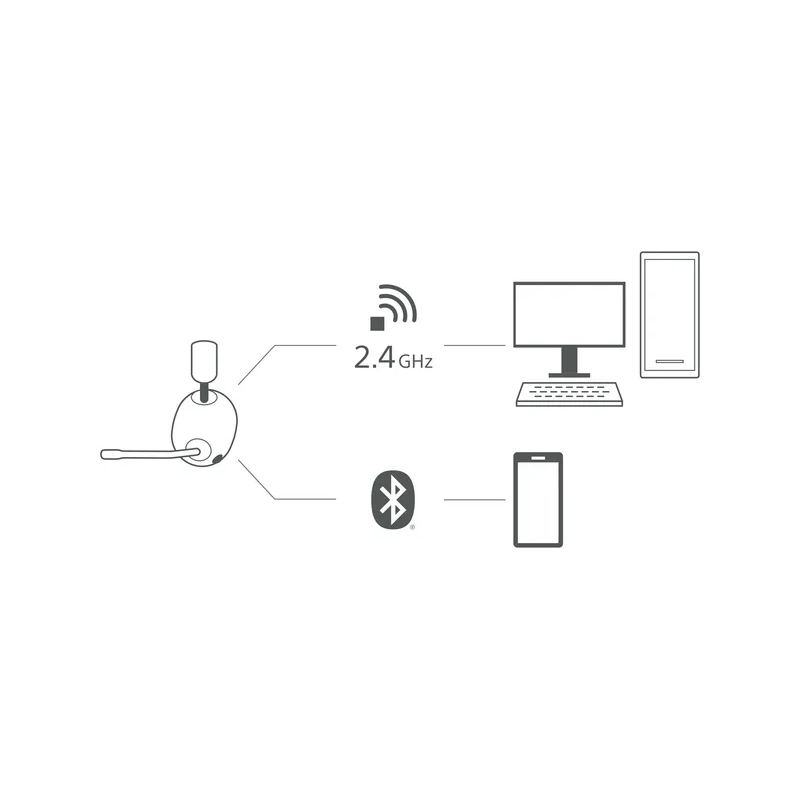 The Sony INZONE H9 gaming headset allows you to simultaneously connect a Bluetooth device and a device with the included USB dongle. Ideal for using Discord on a smartphone while enjoying the game's audio on a PC or console.