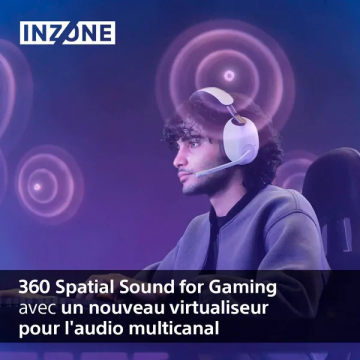The Sony INZONE H9 wireless gaming headset delivers an unparalleled gaming experience. With its 360 Spatial Sound for Gaming technology, active noise cancellation, and exceptional comfort, this headset transforms every gaming session into total immersion. Ideal for gamers thanks to its minimal latency, it ensures precise sound detection, clear communication thanks to its high-quality microphone, and stable wireless connectivity. Furthermore, its compatibility with the PlayStation 5 allows you to enjoy Tempest 3D AudioTech spatial sound in optimal conditions.
