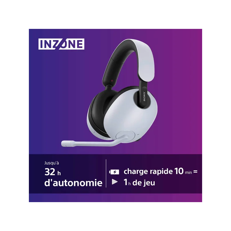 With 32 hours of battery life, the Sony INZONE H9 headset allows for long, uninterrupted gaming sessions. Thanks to fast charging, just 10 minutes provides an additional hour of gameplay!