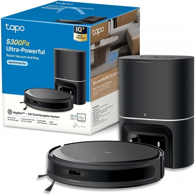 Aspirador de pó robô Tapo com estação de sucção automática, RV20Max Plus, ultra potente 5300Pa, ultra fino MagSlim de 83 mm, navegação LiDAR, controle de voz Alexa e assistente