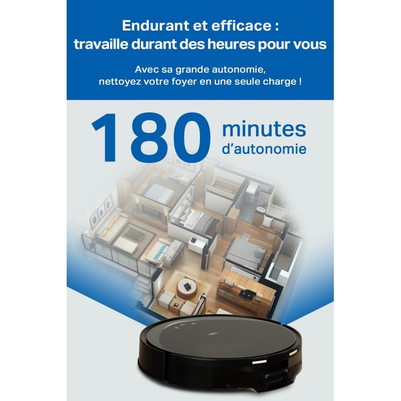 Variado Mapeamento inteligente, aspiração e limpeza simultâneas, anticolisão, modo turbo, zona proibida, limpeza seletiva de cômodos, coleta de pelos de animais, navegação LiDAR