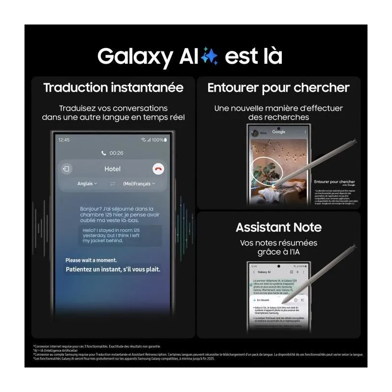 Basta circular o que você vê para realizar uma busca instantânea, traduzir suas conversas para outro idioma em tempo real, transcrever sua voz em texto e obter um resumo, e retocar suas fotos sem esforço — tudo graças à IA.
